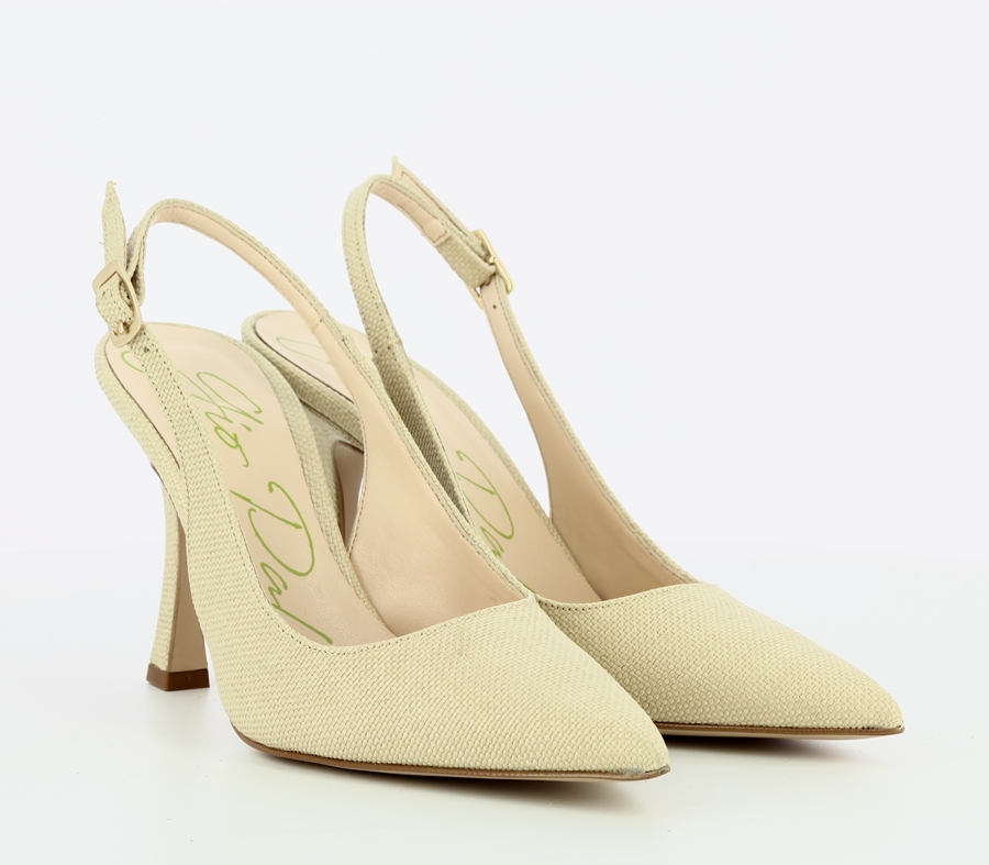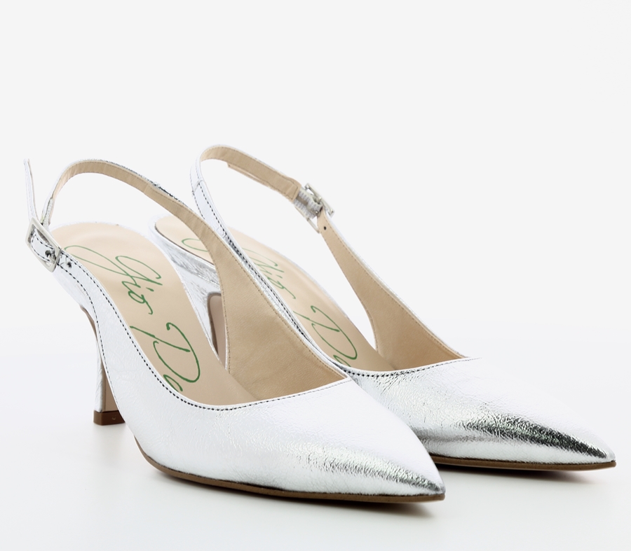 Punta affusolata e tacchi sottili per le nuove slingback di Gio Palma,sono perfette per assicurarvi un elegante look griffato quest’estate. Sono realizzate in Italia con materiale “vegan friendly”e sottopiede memory.Made in Italy