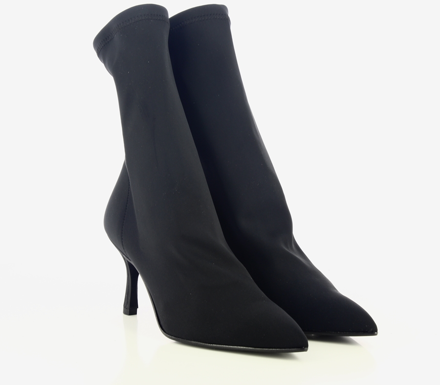 DETTAGLIO: Stivaletto dalla punta affusolata e tacco a spillo. Il gambale è in lycra elasticizzata, che si adatta perfettamente alla caviglia, offrendo una vestibilità confortevole e affusolata. Il design è moderno e versatile, ideale per un look sofisticato.