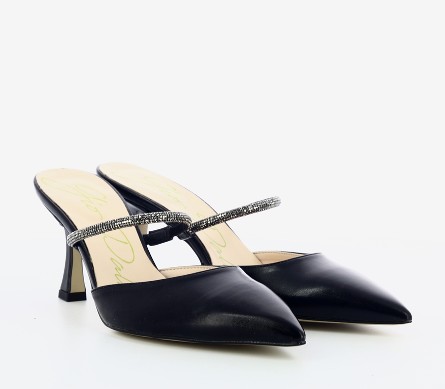 Le mules di Gio Palma si distinguono per il cinturino decorato con cristalli ton sur ton sul collo del piede. Punta affusolata e tacchi sottili, sono realizzate materiale Vegan friendly,sottopiede memory.Realizzate in Italia
