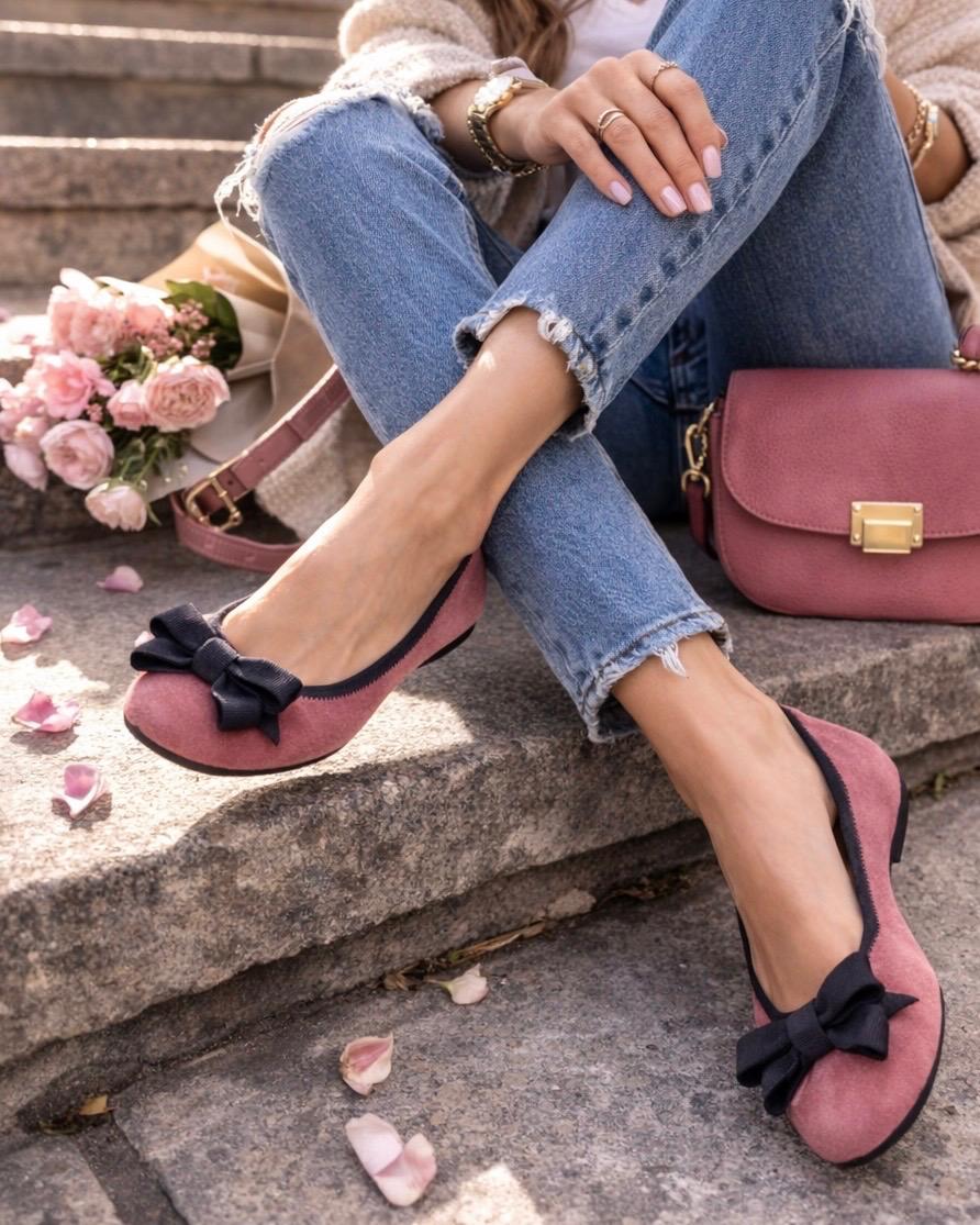 Ballerina donna rosa cipria in camoscio con fiocco testa di moro PE26 | pepperinacalzature.com