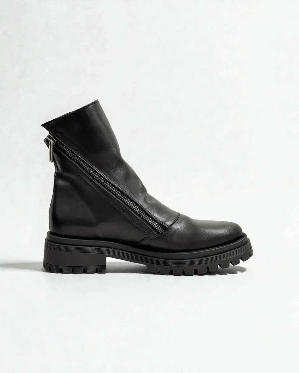 Biker Boot Donna in pelle nera con suola carrarmato | pepperinacalzature.com