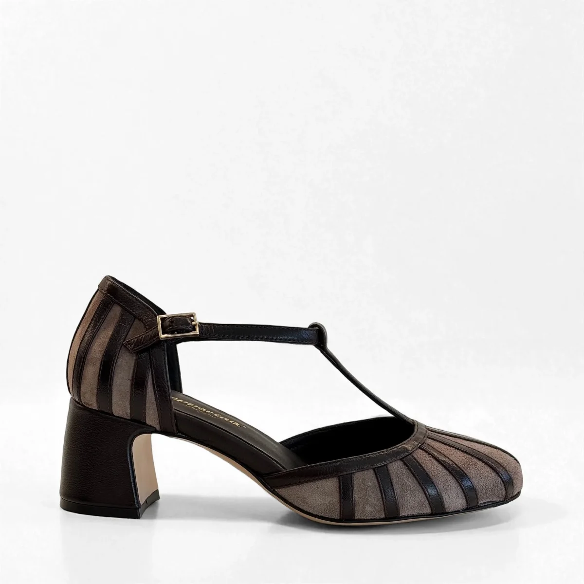 Charleston donna tacco 5 cm camoscio e pelle testa di moro AI25 | pepperinacalzature.com