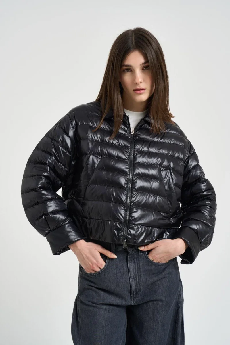 Cappa donna cropped leggera nera