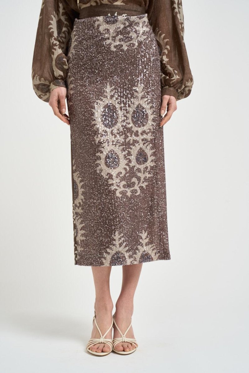 Gonna donna full paillettes cipria