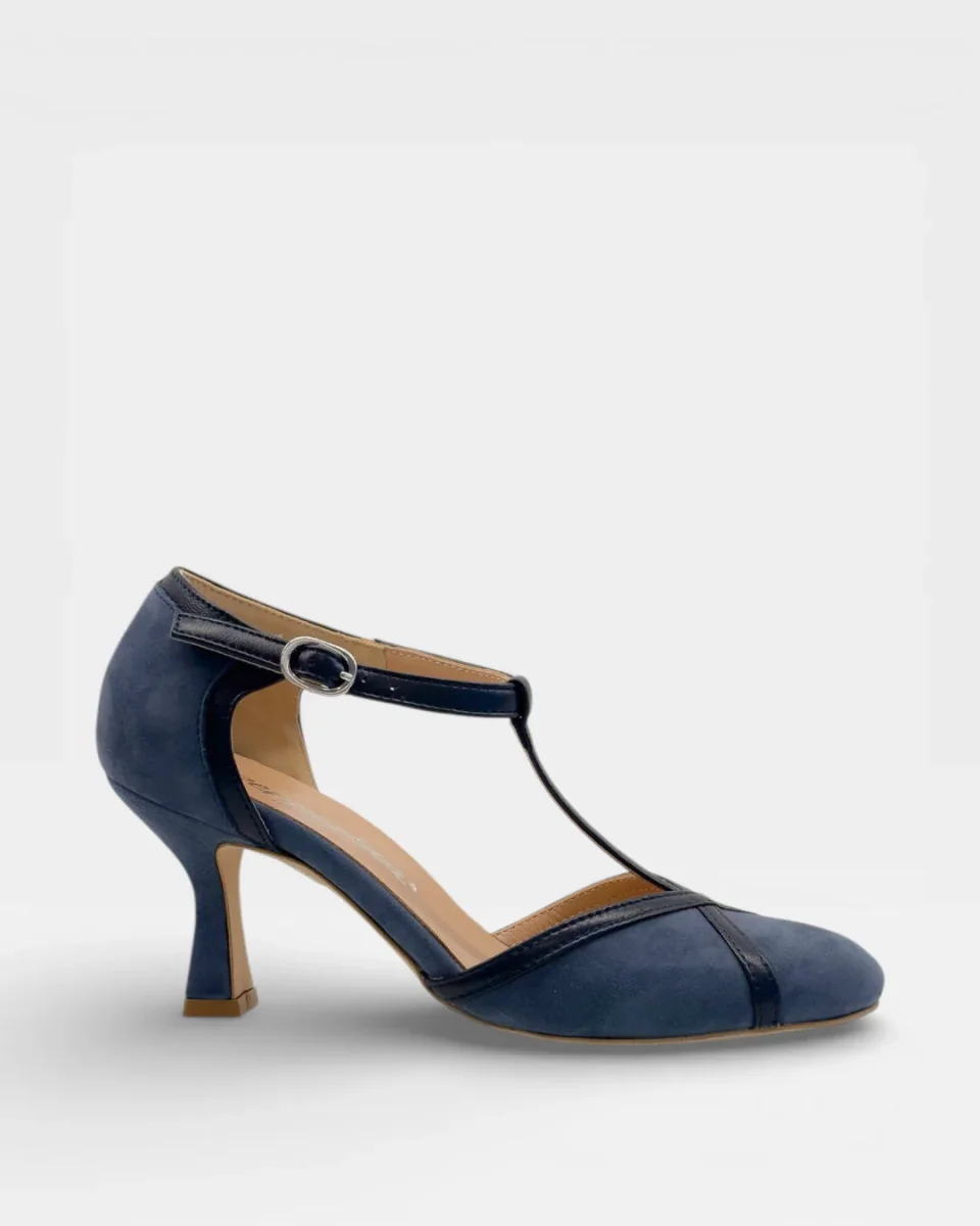 Scarpa Donna Charleston camoscio blu tacco 7cm - AI25 | Pepperinacalzature.com