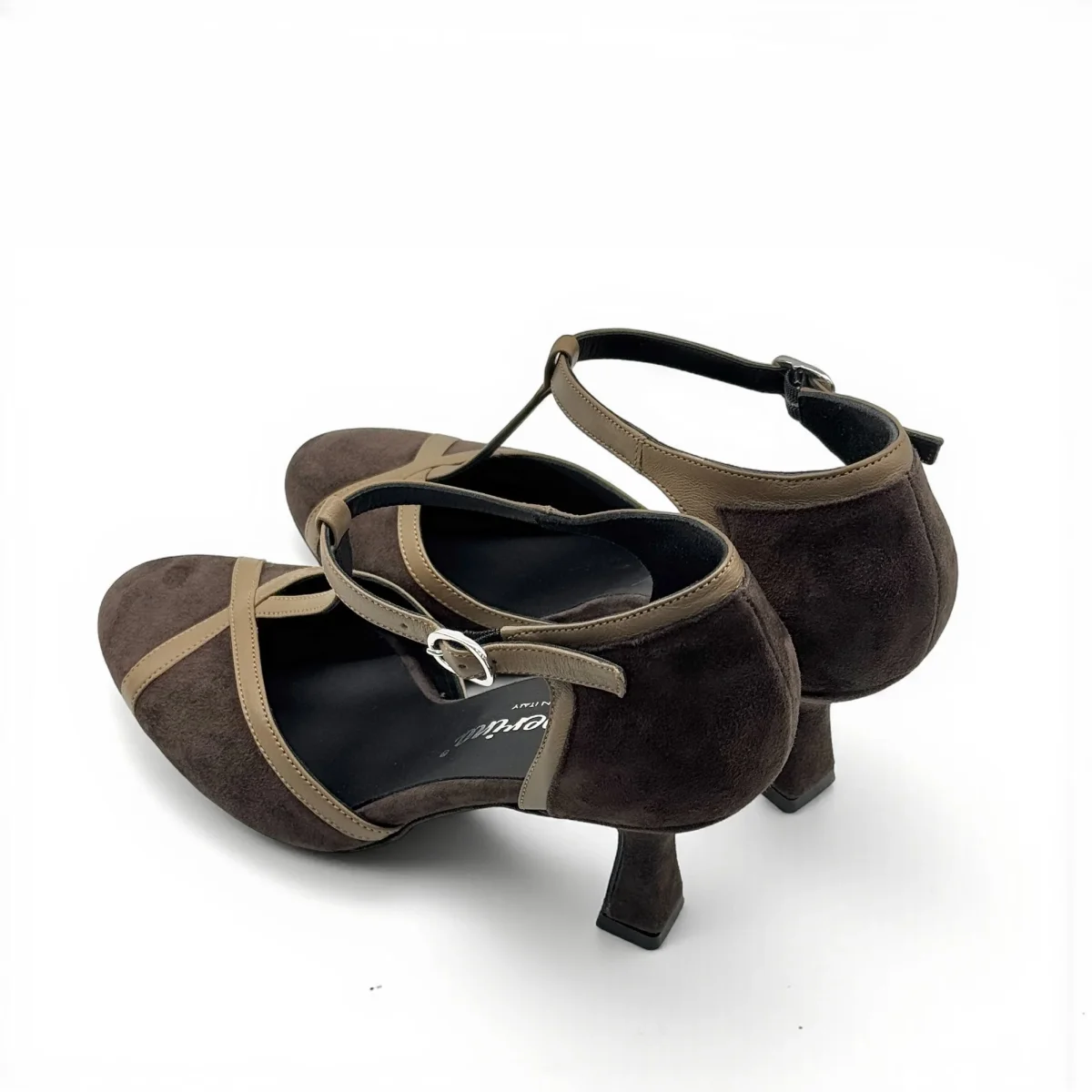 Scarpa Donna Charleston camoscio Marrone Tacco 7cm - AI25 | Pepperinacalzature.com