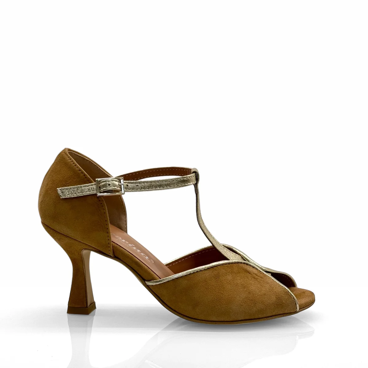 Scarpa donna charleston open toe camoscio cuoio con tacco 7 cm | pepperinacalzature.com