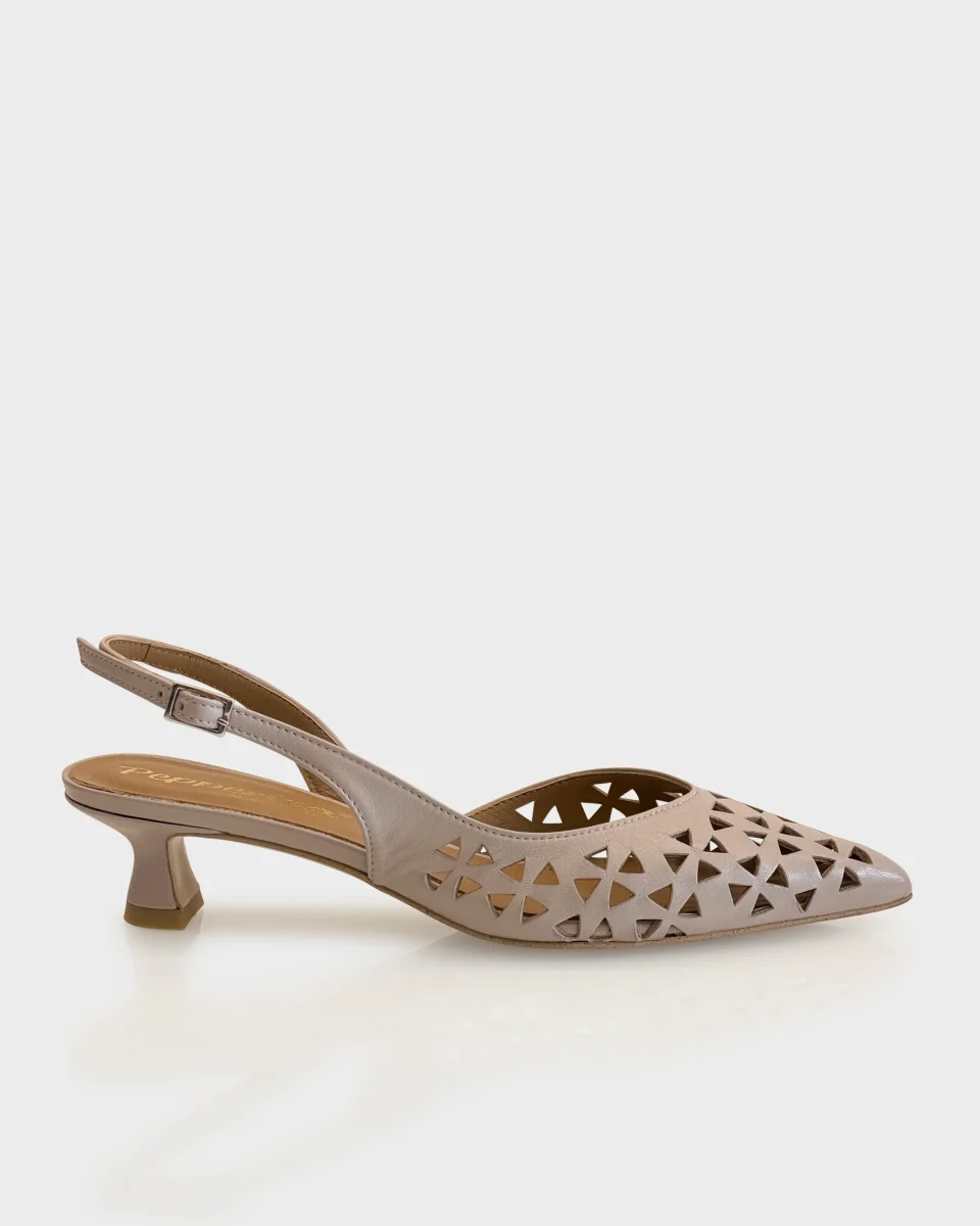 Slingback donna taupe traforata tacco 4 cm in pelle PE26 | pepperinacalzature.com