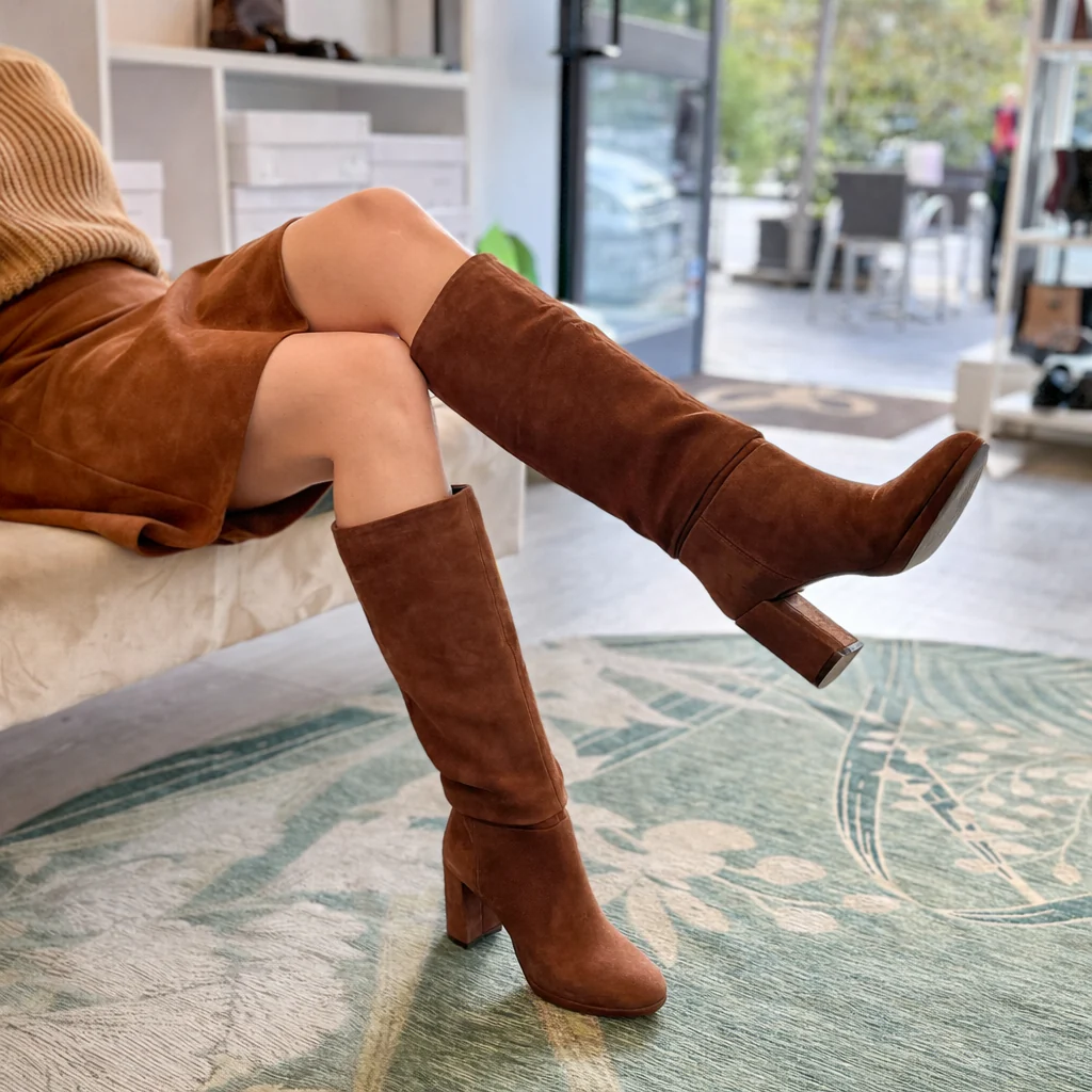 Stivale donna in camoscio terra cotta con tacco largo 8 cm | pepperinacalzature.com