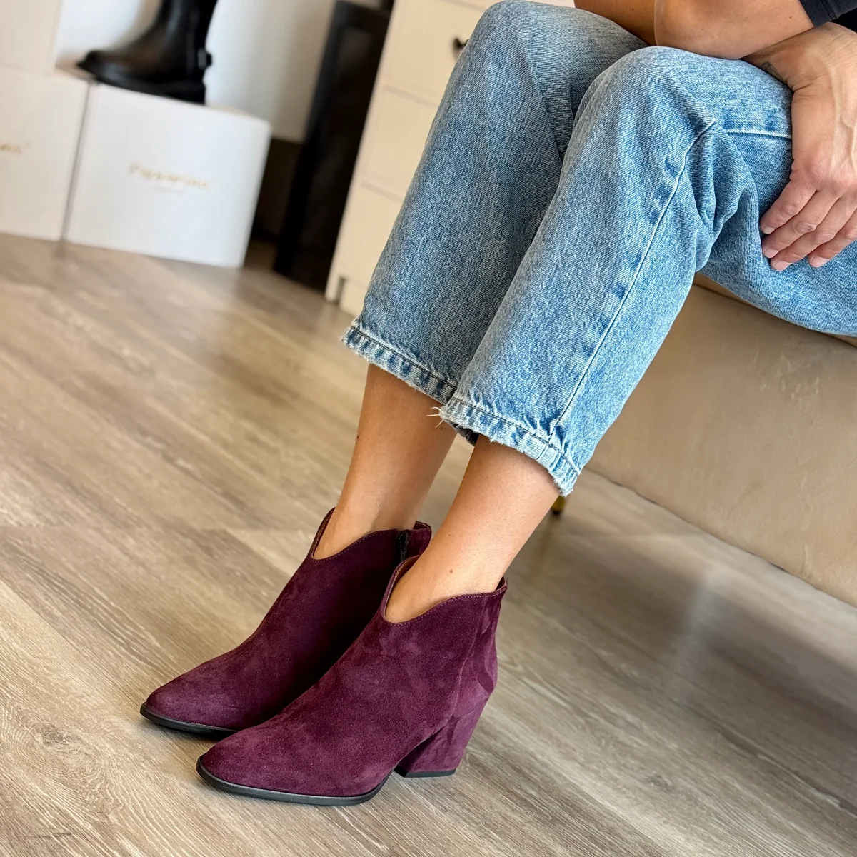 Stivaletto camperos donna in camoscio bordeaux idrorepellente con tacco 7 cm | pepperinacalzature.com