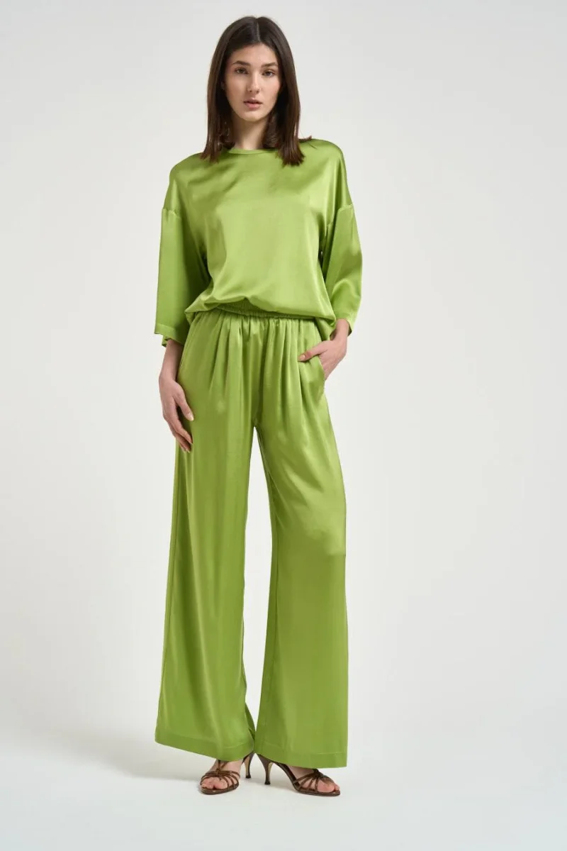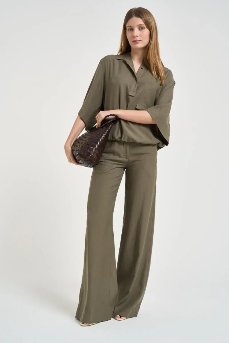 Blusa donna maniche a tre quarti verde militare