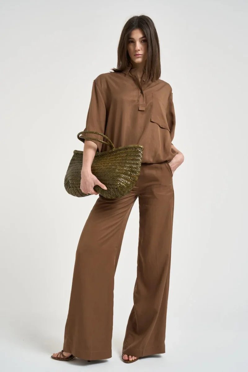 Blusa donna maniche a tre quarti marrone