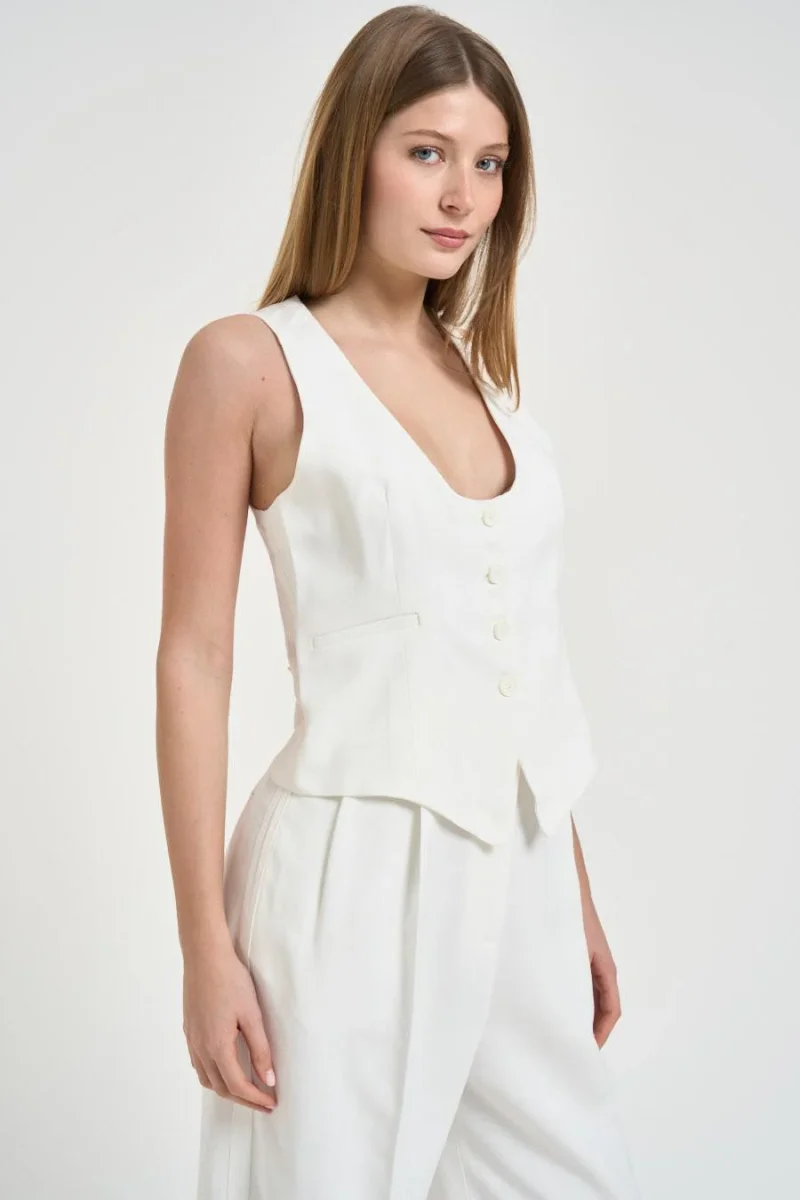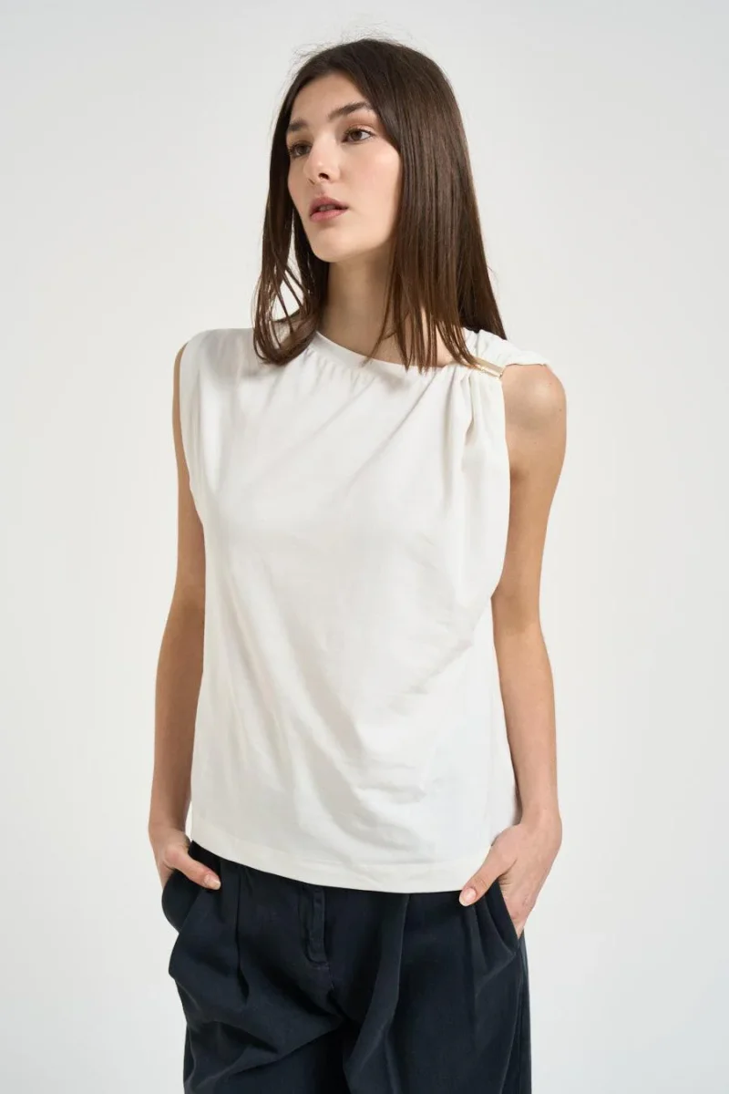 T-shirt donna smanicata con dettaglio gioiello dorato